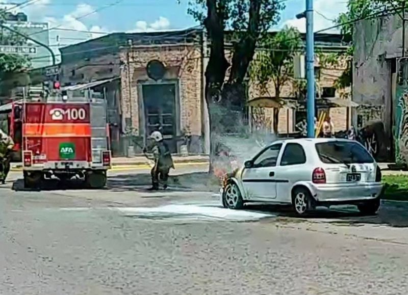 El fuego se desató en un Chevrolet Corsa y causó serios daños en la parte delantera.