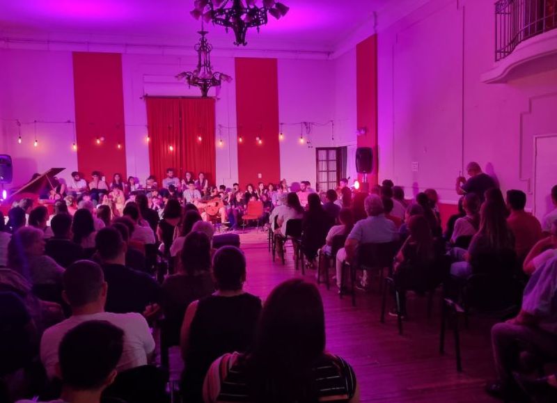 Durante la velada, las alumnas y los alumnos, acompañados por sus docentes, presentaron producciones en violín, piano, percusión, guitarra, flauta traversa, ukelele, saxofón y práctica coral, en los distintos niveles de lenguaje musical.
