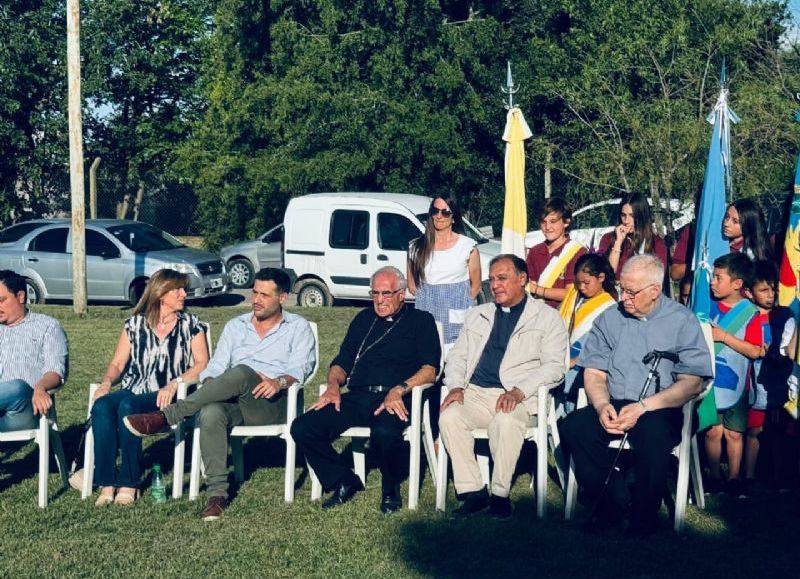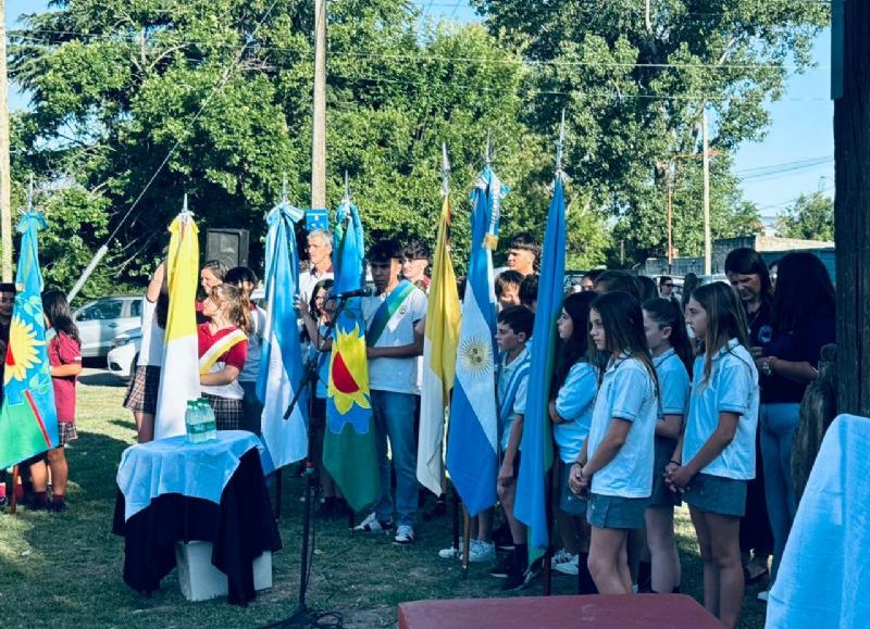 El color de la jornada lo aportaron las banderas de ceremonia de las instituciones educativas que se sumaron al homenaje: la Escuela Parroquial, el Colegio San José y el Jardín de Infantes "La Posta del Ángel".