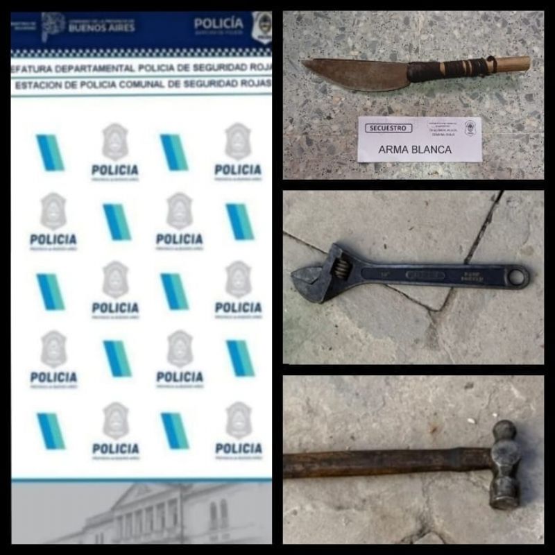 En poder del detenido se secuestraron un martillo, una llave pulseana de quince pulgadas y una cuchilla de fabricación casera de unos veinte centímetros de hoja, con cabo de madera envuelto en elástico. Los elementos fueron reconocidos por la víctima.